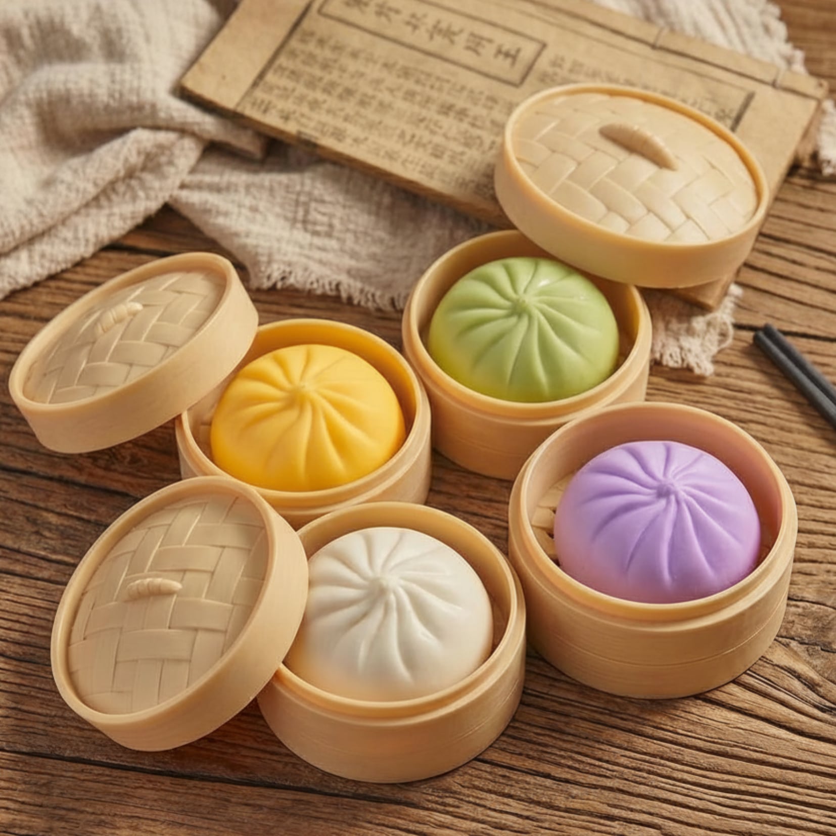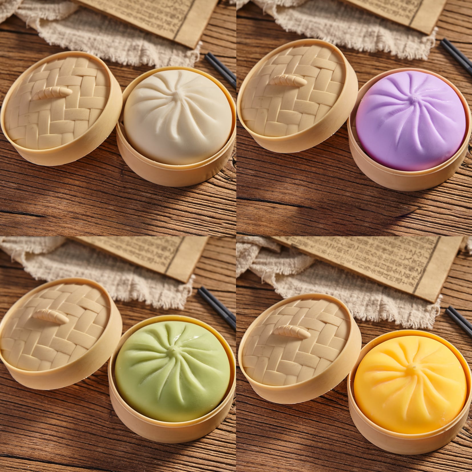 せいろにちょこんとのった姿が愛らしい、ふわふわ・もちもちの肉まんスクイーズ♡
